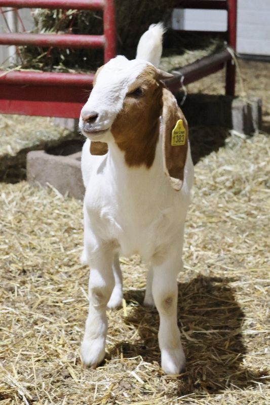 1377 has a good bite; 2 teats wide separated each side; no split scrotum. He was a triplet and a bottle baby, thus rate of gain is not what we like, but, on 25 March 2026 he weighed 52 lbs. giving him a .45 average daily gain.